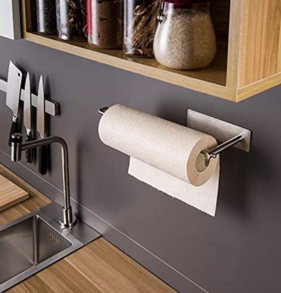 How about these kitchen paper towel roll holders which can be installed under the cabinet to free up desk space, so when you need to wipe your hands while cooking or cleaning, you can easily grab the kitchen paper towel.