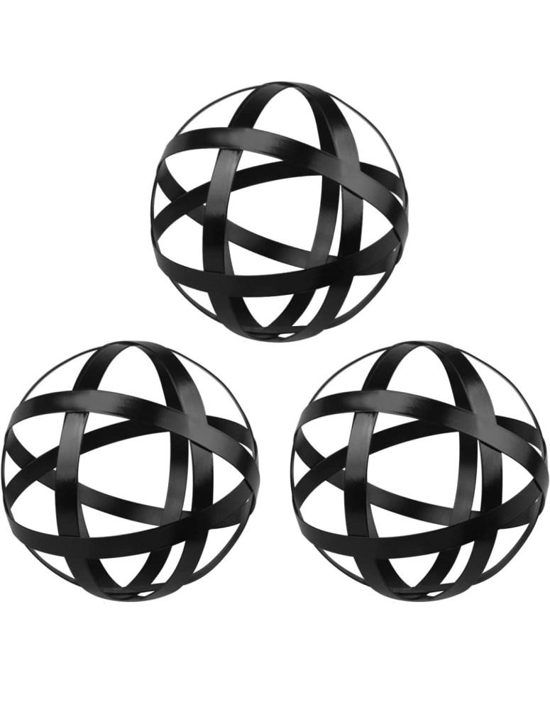 Torre & Tagus Orbit Glass Décor Ball, 4.5-inch Diameter, Black https://amzn.to/3l7uy6k Orbit Four 1/2 Inch Black Glass Décor Knotted Ball, Small: Handmade exclusively by Torre & Tagus. This small, decorative art-glass style knot is artisan-crafted from clear glass with a bold black core. The sculptural sphere will add visual interest to any space, and the bright black and white palette adds a welcome pop of style to any modern decor. Display it in multiples in a bowl or basket, or place on a shelf, a mantle, or a cocktail table. The small item adds a ton of style-and makes an inspired gift! It measures approximately 4.5 inches in diameter. Torre & Tagus specializes in sourcing the very best in clean, contemporary home decor and accessories from around the world. We create collections that reflect the newest trends in modern design and our style is synonymous with fresh, comfortable modern design in products that bring beauty to everyday living.Metal Decorative Sphere for Home Decor https://amzn.to/3X1m1Pz Distressed Gold, Hand Painted, Modern Decorative Balls for Living Room, Bedroom, Kitchen, Bathroom, Office – Table Decorative Orbs centrepiece Featuring a beautiful gold, this lattice metal sphere is perfect for filling large glass bowls, vases and more. Display it in your home for a simple, yet interesting touch. Can be used to compliment your current decor scheme or make it the focal point of the room Diameter: 4 1/2 inchesDecorative Iron Band Sphere. Metal Decorative Ball https://amzn.to/3RAY2Wo. Modern Home Decor Accents Ball – Tabletop Decorations for Living Room, Kitchen, Bedroom – Centerpiece for Coffee Table, Side Tables (Gold) Size:6 ”L6 ”W6”H Metal ball decoration: The decorative sphere is made of high quality metal with exquisite craftsmanship, durable and easy to clean. The design of the metal ball is very unique which is consists of a large hollow ball surrounded by metal bands. When the metal ball is placed with other decorations, it is easy to stand out and attract the attention of the guests. This sphere decor piece breathes new life into a dull surface or shelf in your living space. Modern home orbs: The ball decoration for table decor offer modern elegance to any room. Perfect size, novel shape but doesn’t take up your space, it is a great table decoration. It can be placed on coffee tables, dining tables, shelves, TV cabinets, bookshelves, With the sleekness and texture of a modern home, metal balls can breathe life into your home’s bookshelf or tabletop and add a fun vibe to your room.YIYA Black Decorative Sphere Set of 3 Metal Ball https://amzn.to/3JUAM3V Table Decor for Living Room Bedroom Kitchen Office Coffee Table Desk Material: The decorative sphere is made of high quality metal with exquisite craftsmanship, durable and easy to clean. The metal ball has a chic shape and is a must-have decoration for every home. The size of each metal ball decoration is 4.3 inch * 4.3 inch. You will get three black metal ball decorations. The metal band sphere is formed by coiling multiple metal bands, and there are hollows of different sizes on the metal ball. The design of the metal ball is very unique. When the metal ball is placed with other decorations, it is easy to stand out and attract the attention of the guests. Metal balls are great for filling large glass bowls, vases, baskets and more. Metal balls can be placed on the table as a centerpiece. With the sleekness and texture of a modern home, metal balls can breathe life into your home’s bookshelf or tabletop and add a fun vibe to your room.Medium Black & Gold Iron Band Decorative Sphere https://amzn.to/3Rqv4bH Features black bands that cross through each other at several points. Each joint is embellished with a touch of gold paint for eye catching contrast and the interior of the sphere consists of empty space. Display it in your home for a simple, yet interesting touch. Can be used to compliment your current decor scheme or make it the focal point of the room Dimensions: 6 7/8 x 6 7/8 x 6 1/4 inches.Dreamseden Geometric Sculpture, Gold Decorative Metal Sphere https://amzn.to/3DF4whc Modern Home Decor Accent for Table Shelf Living Room Desk, 6.3 Inches The golden decorative sphere is made of cube metal. Manual welded with smooth surface and gold finished. One end of the decorative ball is designed with 4 small dots for stable placement, so you have 2 display position for different home styles and decorative surroundings. This creative geometric sculpture art combines traditional look and modern elegance. Great metal accent decor as centerpieces for tables, home deocr for shelves, styling living room decor, bookcase decor objects, wall decor, or even hanging ornaments. The metal decor measures 6.3 inches Diameter. Cute and small piece, perfect display size. DreamsEden golden metal sphere can be used as room decor, office art sculpture, entryway decor ornaments.Large Black & Gold Iron Band Decorative Sphere https://amzn.to/3DxuvXN Features black bands that cross through each other at several points. Each joint is embellished with a touch of gold paint for eye catching contrast and the interior of the sphere consists of empty space Display it in your home for a simple, yet interesting touch. Can be used to compliment your current decor scheme or make it the focal point of the room Diameter: 10 inchesXanter Metal Sphere (Silver, Small) https://amzn.to/3jofRvc Made from 3/8 inch thick solid aluminum rods. Casted and welded into connecting loops with a beautiful plated finish. This metal decorative sphere is perfect for filling large glass bowls, vases and more. Display it in your home for a simple, yet interesting touch. Can be used to compliment your current decor scheme or make it the focal point of the room.Metal Decorative Sphere for Home Decor https://amzn.to/3Y0AzAe Trendy Gold, Hand Painted, Modern Decorative Balls for Living Room, Bedroom, Kitchen, Bathroom, Office – Table Decorative Orbs for 