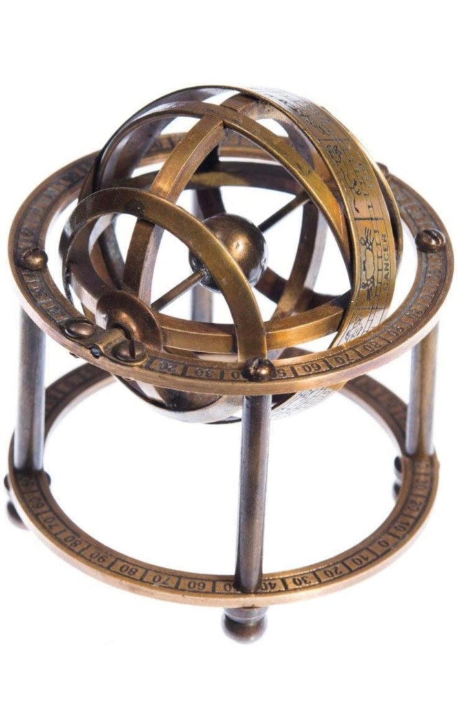 Vintage Zodiac Armillary Brass Sphere Globe On Wooden Base https://amzn.to/3HXYc75 Antique Display Ship Decor(Desk/Table Home/Office Deco) Classic design suits traditional themed decor, Perfect decor for offices, Libraries, Classrooms. It is made out of Solid brass & Wooden base. It brings an antique vibe to your space.Humaira Nautical Brass Armillary Sphere with Stand, https://amzn.to/3YjoPcp 9 cm High – Steampunk, Pirate or Vintage Decoration Product description Replica Premier Housewares, some movements of the armillary celestial objects Metal ball and stand Height: 9 cm Diameter: 7 cm Perfect for your garden decoration for Steampunk and vintage Style: Medieval Pirate, STEAMPUNK Color: Yellow Replica of Premier Housewares, some movements of the armillary Celestial Objects Metal Ball and Stand Height: 9 cm Diameter: 7 cm Perfect for your garden decoration for Steampunk and vintage.Marine Nauticals Astronomical Brass Engraved Brass https://amzn.to/3X4W3L9 Tabletop Armillary Nautical Sphere Globe Fathers Day Gift Items This decorative Engraved Brass Tabletop Armillary Nautical Sphere Globe is truly a wonderful work of art. Handcrafted to look authentic to the era this classical yet stylish hand bell will look absolutely beautiful in your home. It makes a great house warming gift for that special friend that loves the ocean astronomy astrology sea ships navy etc. – or simply a wonderful contemporary home decor piece for your own home features. Engraved brass tabletop globe is a must-have addition to any decor Base is mounted on turned solid wood. Armillary spheres or globes have become an icon of science with their elegant rings and beautiful silhouettes. Instrument consists of a set of graduated rings representing circles on the celestial sphere. Brass sphere at the center of the armillary represents Earth Gorgeous tabletop reproduction is manufactured with brass-plated metal. Dimensions – 5.5 H x 4″ W x 3″ Base in.. Item.Deco 79 Metal Compass Armillary Globe, 17″ x 14″ x 25″, Brass https://amzn.to/3YixL0U Place this globe on any counter or table to show your love for traveling. Embark on an exciting adventure with this world globe decor. Display as accent or centerpiece decor on your traditional-themed home space. This item ships in 1 carton. This world globe measures 14″ diameter. Suitable for indoor use only. This is a single globe. Traditional style.Brass Nautical Brass Sundial Compass Nautical Gift from Brass Nautical https://amzn.to/3HYP4z3 Brand: The New Antique Store Material: Brass batteries not included Item weight 0.17 KilogramsCastle Instruments Antique Brass 11″ Armillary Sphere https://amzn.to/3l7nneq Globe Astrolabe Zodiac Engraved Celestial Globe Wooden Base (Multicolored) Capturing time in its sculptural form, an armillary sphere will bring an impressive focus to your home and your table Decor. If you are looking for a very special gift, perhaps as a wedding gift or to celebrate an important anniversary, an armillary sphere engraved with your thoughts and good wishes, makes a magnificent present that will last a lifetime.Brass Armillary Sphere with Stand, 9 cm High – https://amzn.to/3Y51KK7 Steampunk, Pirate or Vintage Decoration Replica Premier Housewares, some movements of the armillary celestial objects Metal ball and stand Height: 9 cm Diameter: 7 cm Perfect for your garden decoration for Steampunk and vintage Style: Medieval Pirate. STEAMPUNK Color: Yellow Replica of Premier Housewares, some movements of the armillary Celestial Objects Metal Ball and Stand Height: 9 cm Diameter: 7 cm Perfect for your garden decoration for Steampunk and vintage.Metal Armillary On Stand https://amzn.to/3HTtNXp 17 inch nautical rustic iron decorative armillary sphere, tarnished brass finish iron band frame ring with raised rivets, 4 nesting round band rings, center globe on diagonal pole with spear and Arrow finials, turned wood-style tapered stand with tiered base.