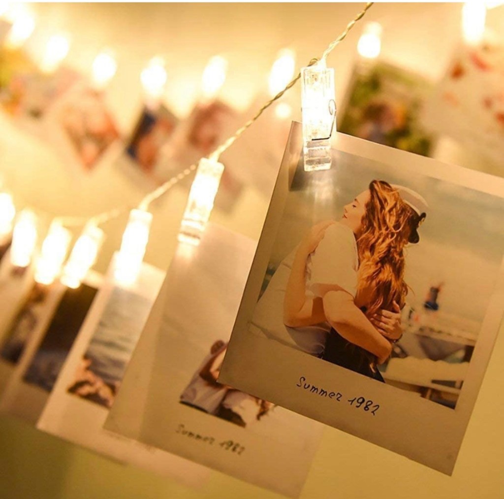 Hold Priceless Memories-The strand of lights is a very unique way to display pictures in your house. It can make the plain white wall come to life with pictures of all the things that matter to the one you care.