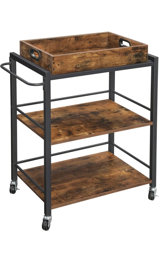 Industrial Kitchen Rolling Utility Cart, Heavy Duty Storage Organiser, Wheels, for Kitchen and Living Room, Rustic Brown LRC78X