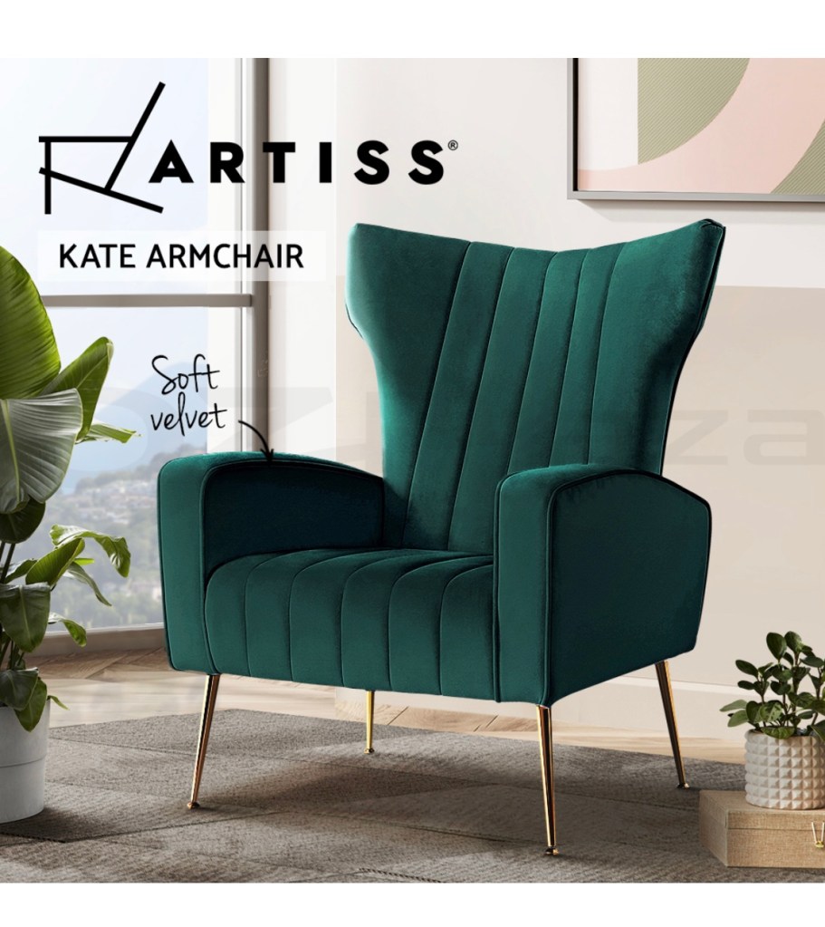 Artiss Kate armchair offers a wide, high-back, and welcoming seat with comfortable armrests for you to relax. It is ideal for every corner of your space where you want to add soft and comfy touches.