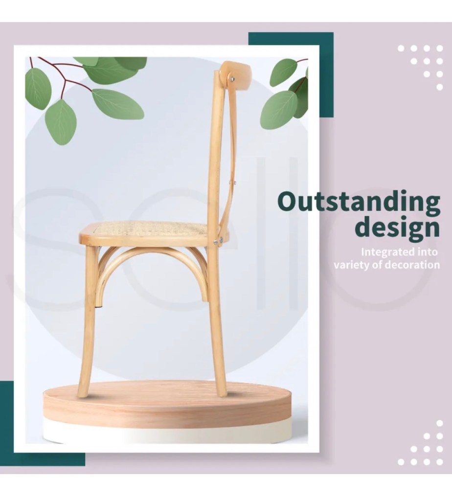 Levede 2X Dining Chairs Cross Back Chair Wood Mid Century Rattan Cane Furniture https://ebay.us/c7DEwl