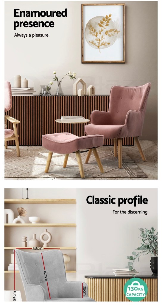 So style the way you want to achieve the desired look. The armchair is upholstered in premium faux linen fabric/velvet with a rich high resilience foam padding for comfort, and the tufted design also adds extra elegance.