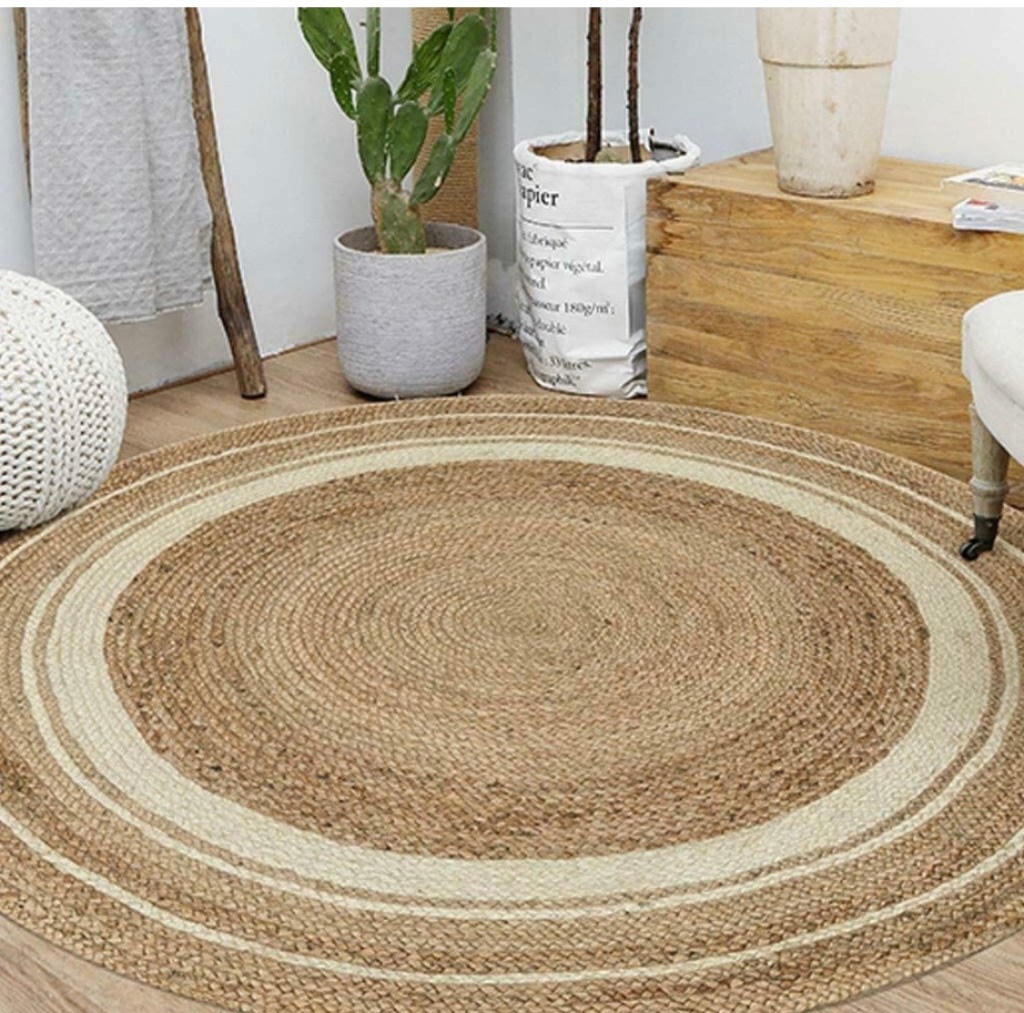 Round Handmade Bohemian Style Braided Area Rug Natural Jute(60×60 cm (2 Feet Round)).