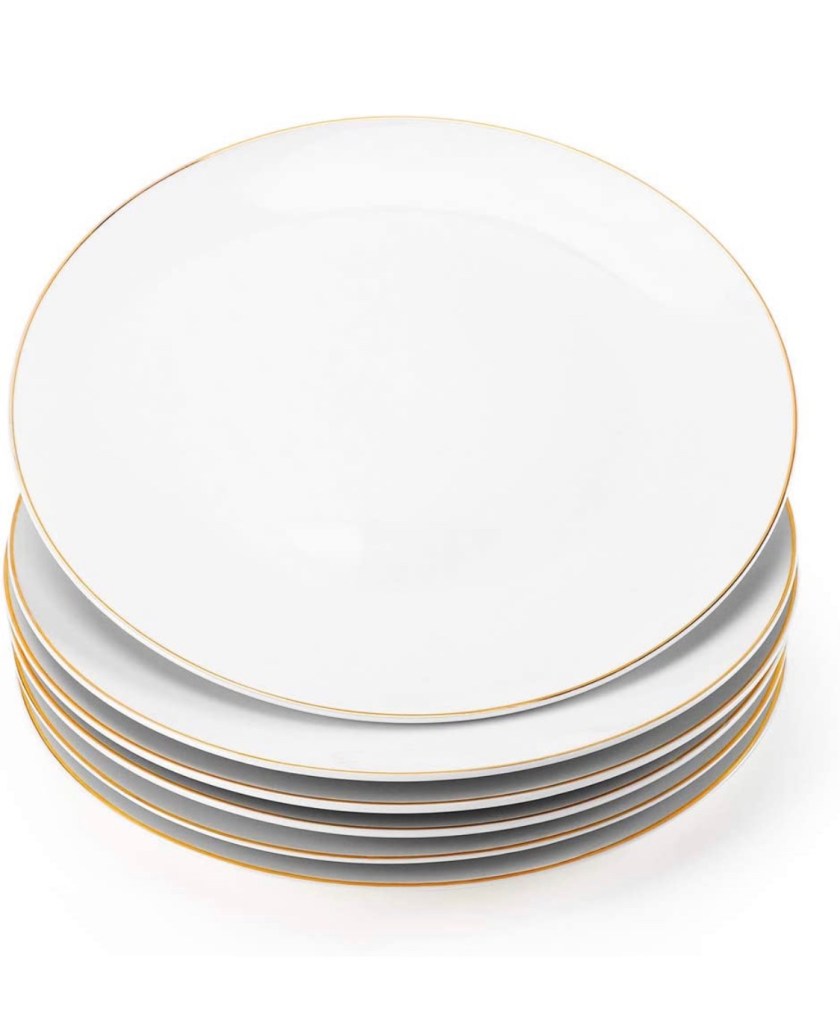 Material: Porcelain – Expertly crafted white porcelain. Royal gold trim accentuate the piece. Has a clean, elegant look. These kitchen dinnerware sets will enhance every meal.10 Strawberry Street 10.5″ Catering Coupe Dinner Plate,https://amzn.to/3EdhvX1 Set of 12