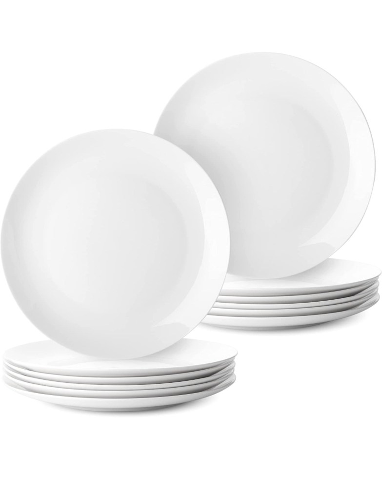 amHomel 12 Piece Dinner Plate Set makes Every Meal Special, It adds Classic element to your table whether used on its own or Mixed it with Your Other Dinnerware. It was made from Durable and Premium quality Porcelain, design to Easy Care and Every Use.Mikasa Indira Chip Resistant 16-Piece Dinnerware Set,https://amzn.to/3szzQLm Service for 4, White