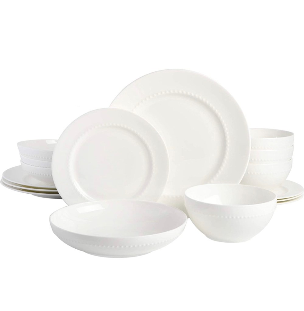 Durable enough for daily use, these plates are dishwasher safe, but microwaveable and oven not recommended due to its golden rim.Mikasa 5151631 Ciara 16-Piece Bone China Dinnerware Set,https://amzn.to/3qGwUw9 Service for 4 White