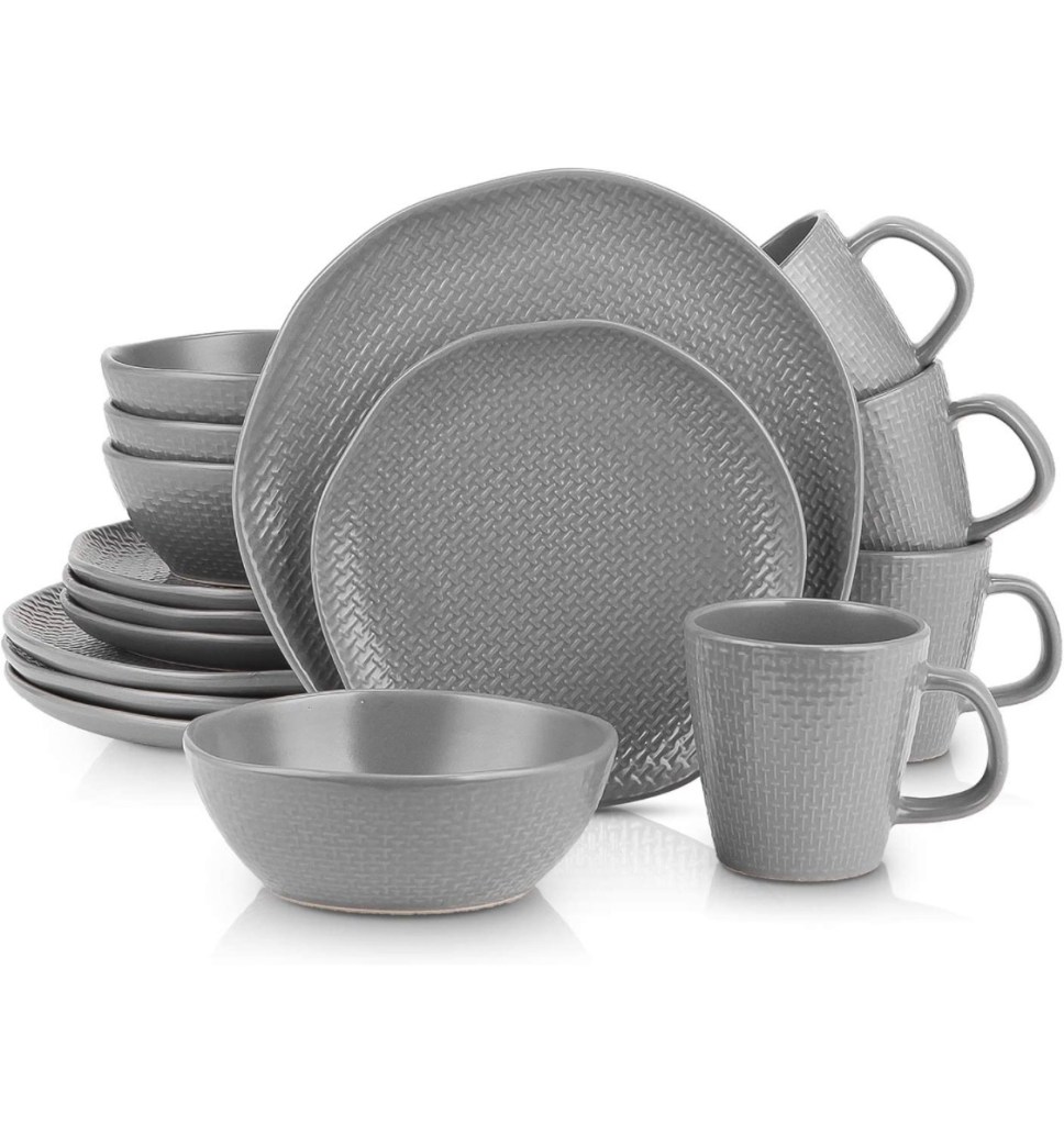 Stone Lain Round Body Weave EmbossedPorcelainDinnerware Set, Service for 4, Gray https://amzn.to/3YSquql