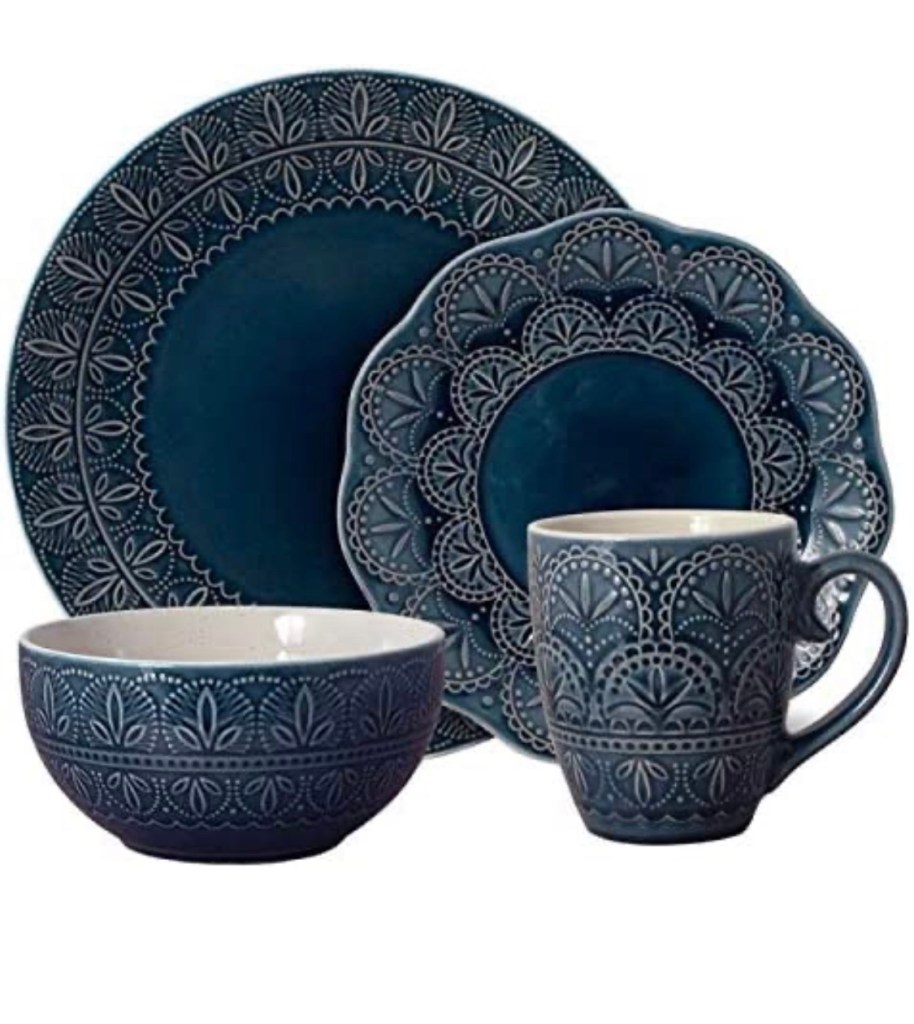 Made of porcelain. Italian Countryside is dishwasher and microwave safe. This 16-piece dinnerware set includes 4 each of: 11-inch dinner plate, 8-1/2 inch salad plate, 6-1/4 inch cereal bowl, 28-ounce capacity, and 4-1/2 inch mug, 15-1/2 ounce capacity.Pfaltzgraff Havana Dinnerware Set (16 Piece), Blue https://amzn.to/3PjjDTM