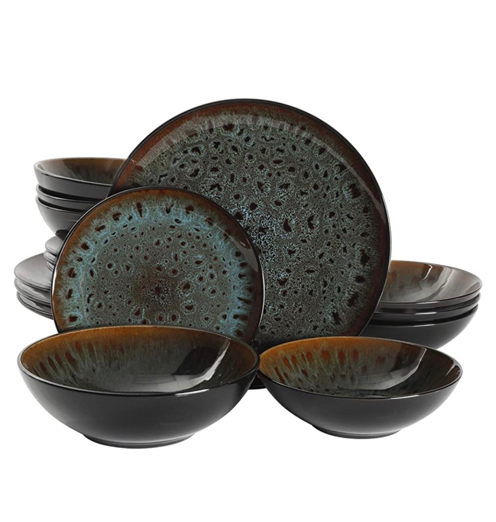 Gibson Elite Kyoto Double Bowl Dinnerware Set, https://amzn.to/3stE0o9 Service for 4 (16pcs), Teal