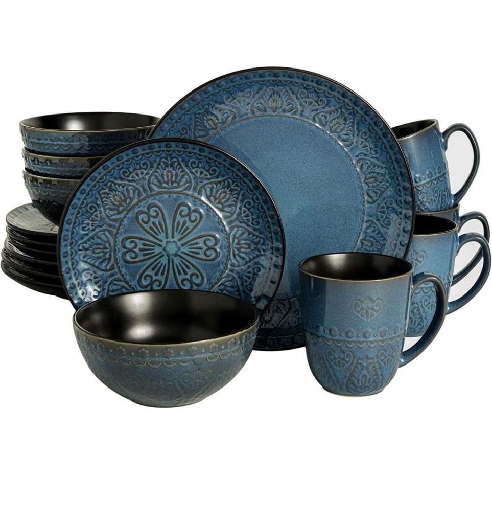 Microwave and dishwasher safe.Gourmet Basics by Mikasa 5246992 Anastasia Blue 16-Piece Dinnerware Set, Assortedhttps://amzn.to/3OVgmIO