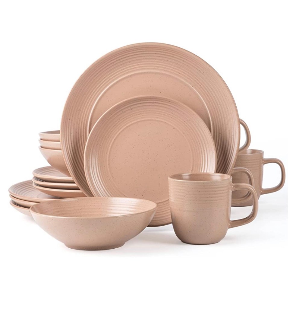 Microwave and dishwasher safe.Arora RINGAR Round Stoneware 16pc Dinnerware Set of 4, https://amzn.to/3PgNXgD Dinner Plates, Side Plates, Cereal Bowls, Mugs – Speckle Matte Coral (416867)Pfaltzgraff Cambria 16-Piece Stoneware Dinnerware Set, Service for 4, Dark Brown https://amzn.to/44AzcL0