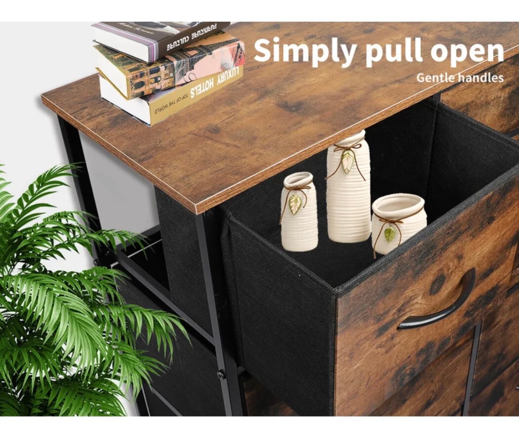 Build your bedroom dresser with the included Allen key. Follow the instructions. Construct the frame in twenty minutes. Fold open the drawers and slot them in. Place it anywhere in your house.