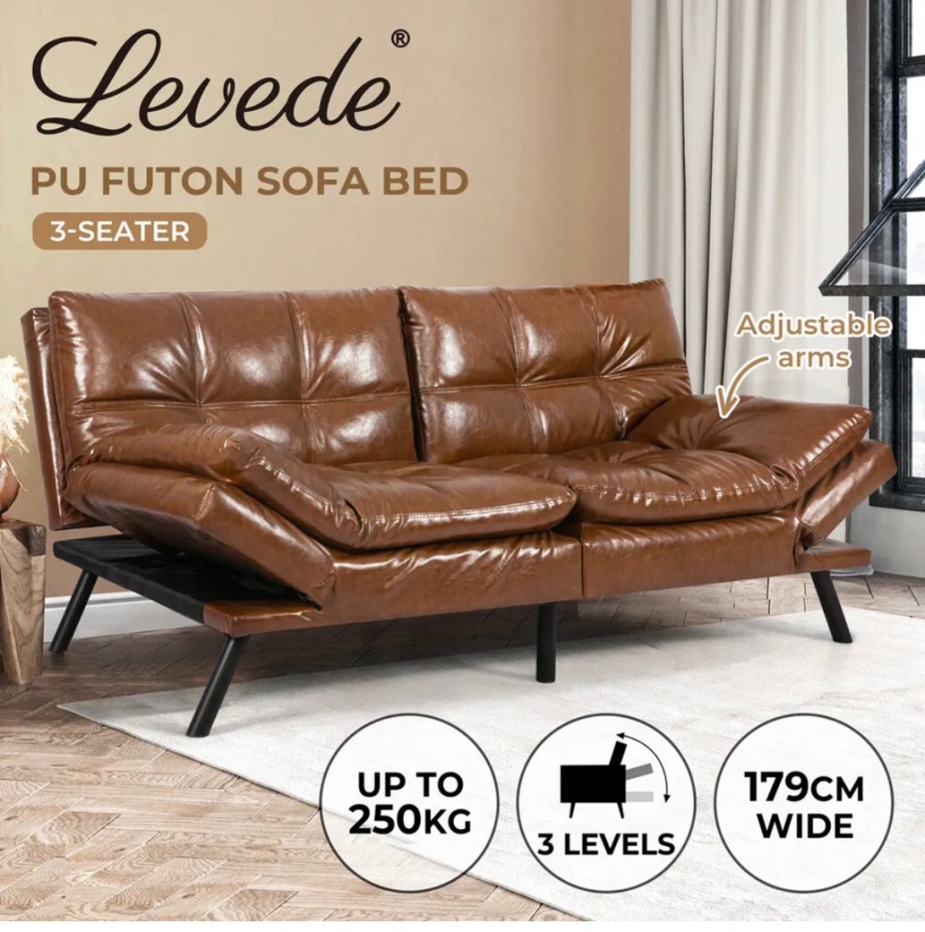 Levede Sofa Bed Futon Recliner Lounge Couch Convertible PU Faux Leather 3-Seater https://ebay.us/QAt3Lc