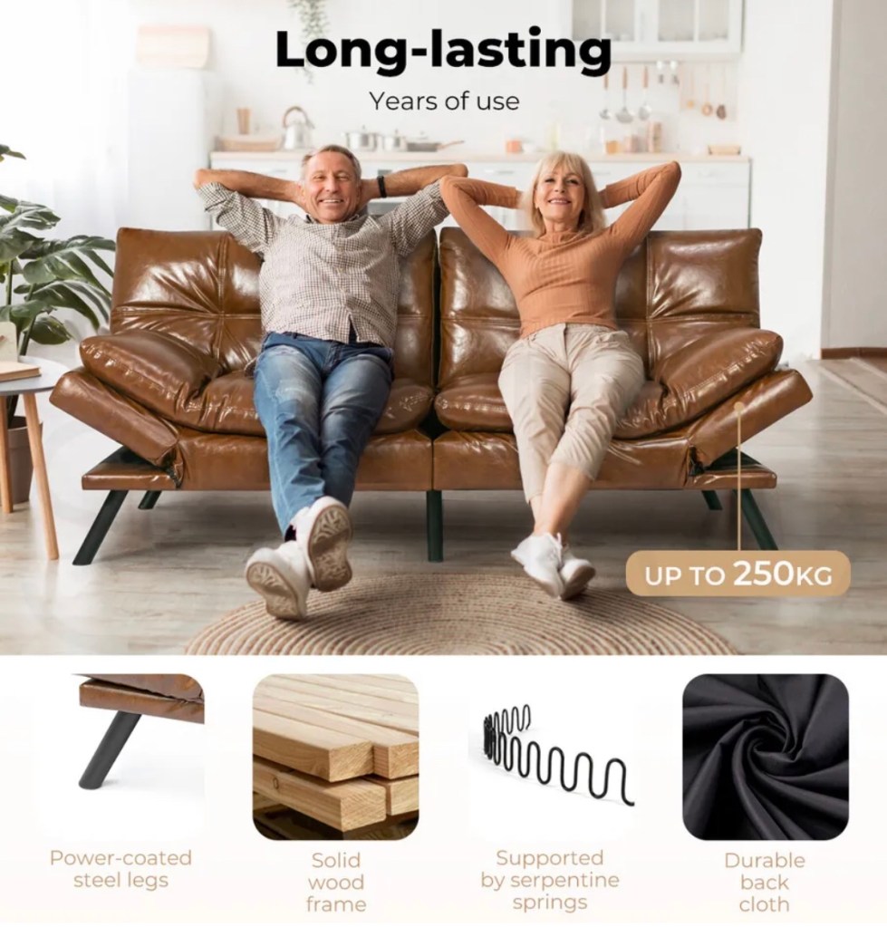 Comfy but stylish. You don’t need to choose with your PU leather futon sofa bed. Update your loungeroom without destroying your bank account. Cuddle up to your love one.