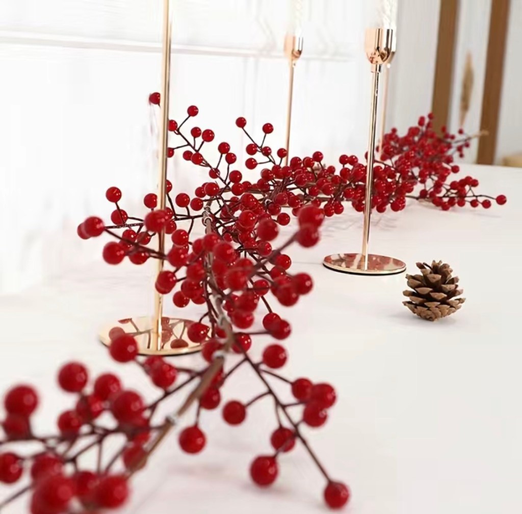 Artificial berries & stem are very versatile, beautiful red berries stems are perfect for Christmas table decorations, holiday, home, party, wedding, also good DIY crafts.