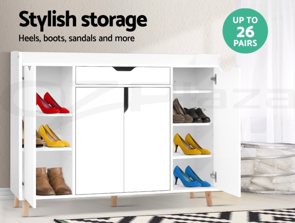 Check on Artiss Shoe Cabinet Wooden Storage Rack 120cm Cupboard White Organiser Drawer now at eBay with amazing price offer for a limited time. Click product link for more details.