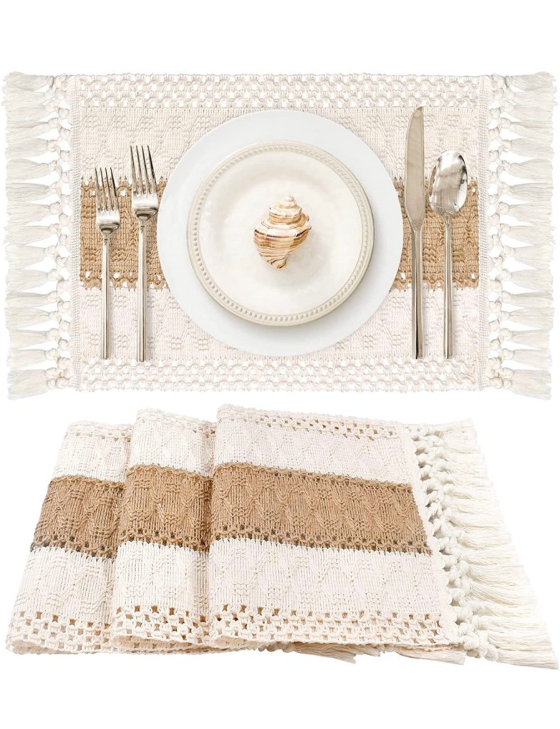 Set of 6 Placemats, Table Mats Decoration Black Non-Slip Washable Heat Resistant Dining Table Matshttps://amzn.to/3YPnWt9 Cross Weave Woven Placemats for Kitchen Room 45cmX30cmPlacemats,Placemats Set of 6,Gold Rose Placemats, https://amzn.to/3YOm5oj 15 x 15 inches/ 38 x 38 cm for Thanksgiving Placemats,Christmas Table Mat,Family Dinner PartyPlacemats Set of 6,Placemat with Coasters Heat Stain Scratch Resistant Non-Slip Waterproof https://amzn.to/45oHFlU Oil-Proof Washable Wipeable Outdoor Indoor for Kitchen Dining Patio Table,Easy to CleaningBETEAM Placemats Set of 6, Woven Vinyl Placemats, Washable & Durable Table Placemats,https://amzn.to/3sogzMX Indoor/Outdoor Use Table Mats, Navy BluePlacemats Set of 4, 12×18 inch Cotton Boho Place Mats with Tassels, Woven Cotton and Burlap Splicing https://amzn.to/3QRRior Tabletop Collection, Modern Farmhouse Placemats for Dining Table Kitchen Bohemian Wedding DecorSet of 6 Placemats, Table Mats Decoration Black Non-Slip Washable Heat Resistanthttps://amzn.to/3P7dh9U Dining Table Mats Cross Weave Woven Placemats for Kitchen Room 45cmX30cmHeat-Resistant Crossweave Woven Dinning Table Set of 8 Placemat PVC Placemats-Excovip https://amzn.to/3KTUhJz Kitchen Place Mats Washable PVC Table Runner(Champagne,8pcs)Set of 6 Round Jute Burlap Table Woven Placemats with Fringe Vintage https://amzn.to/47MbAGc Place Mats for Parties,Farmhouse,BBQ’s, Christmas, Holidays or Everyday Table Use-Size 15×15 Inches Dining Table Decor.Linen Flax Cotton Cloth Dinner Napkin 18×18 Natural https://amzn.to/3qHj5xi with Hemstitched, Wedding Napkins, Cocktails Napkins, Fabric Napkins, Cotton Napkins Mitered Corners , Machine Washable Dinner Napkins, Set of 12Mebakuk Cloth Napkins Set of 12, Premium 17 x 17 Inch Solid Washable Linen Style Napkins,https://amzn.to/3YLlWBQ Soft Table Napkin for Wedding Party Restaurant Dinner Parties (17×17 inches – Flaxen)Gauze Cloth Napkins Set of 6 Soft Cotton Dinner Napkins 16″×16″ https://amzn.to/3P9N8Ho Rustic Bulk Linen Napkins for Wedding Party Casual Table Decoration TerracottaSet of 54 Gauze Cheesecloth Napkins Dinner Napkins Rustic Boho Wrinkled Cloth Decorative Napkins for Home Wedding Valentines https://amzn.to/3OQwVpn PartyDinner Table Decoration, 19.7 x 19.7 Inch (Beige)Cloth Napkin in Salsa Grey Multi Stripe Fabric-18×18,Wedding Napkins, Cocktails Napkins, https://amzn.to/3Kstbcy Fabric Napkins, Cotton Napkins Mitered Corners & Generous Hem, Machine Washable Dinner Napkins, Set of 12MLMW Gauze Cloth Napkins Set of 6 Soft Cotton Dinner Napkins 16.5″×16.5″ Rustic Bulk Linen Napkinshttps://amzn.to/3E74UEK for Wedding Party Easter Table Decoration PinkRuvanti Kitchen Cloth Napkins 12 Pack 18X18 Inch Dinner Napkins Soft,https://amzn.to/47HTZiB Comfortable, Reusable Napkins, Durable Linen Napkins, Perfect Table Napkins, Charcoal Grey Napkins for Dinners, Parties & WeddingSmyrna Original Turkish Cloth Napkins Set of 6 | 100% Cotton, https://amzn.to/45DtetR 18 x 18 Inches Decorative Boho Table Napkins for Dining Table | Versatile Farmhouse Cloth Napkin for Dinner, Wedding and Parties (Beige)Jofefe 6pcs Gold Napkin Rings Round Napkin Holders Buckles for Wedding,https://amzn.to/47NCJs7 Birthday Dinner Party, Family Gatherings, Table Decorations (Gold Leaf Rings)CROWN GUIDE 12 Pack Gold Napkin Rings and Cloth Napkins Set of 6, 17×17 Satin Cocktail Napkinshttps://amzn.to/44heiAs Bulk Table Napkins Holder for Wedding Reception Personalized Napkins Bridal Shower for Party DecorativeHANABASS Wedding Table Decor 6Pcs Napkin Holder Rings Gold Napkin Ring Holders Round Napkin Holdershttps://amzn.to/45ke4Kk Buckles for Banquet Dinner Party Weddings Receptions (Gold) Beaded Garland DecorSknrlko Flower Rings 6 Metal Holder for Wedding Partyhttps://amzn.to/3QWYJep Dinner Table DecorationDighchyu 12Pcs Napkin Rings Holders Napkin Buckle Holder Metal Napkin Holder Adornmenthttps://amzn.to/3QO2IcT for Party Dinner TableMCEAST Satin Cloth Napkins and Napkin Rings Set of 8, Smooth Fabric Table Napkins and Napkin Holder for Wedding,https://amzn.to/3QRQRdN Birthday Dinner Party, Family Gatherings, Table Decor (Rose Gold, 17 x 17 Inches)Jofefe 8pcs Gold Napkin Rings Round Napkin Holders Buckleshttps://amzn.to/3PaAHuM for Wedding, Birthday Dinner Party,linkCode=ml1&tag=barefootjua03-2 Family Gatherings, Table Decorations Gold-Spring
