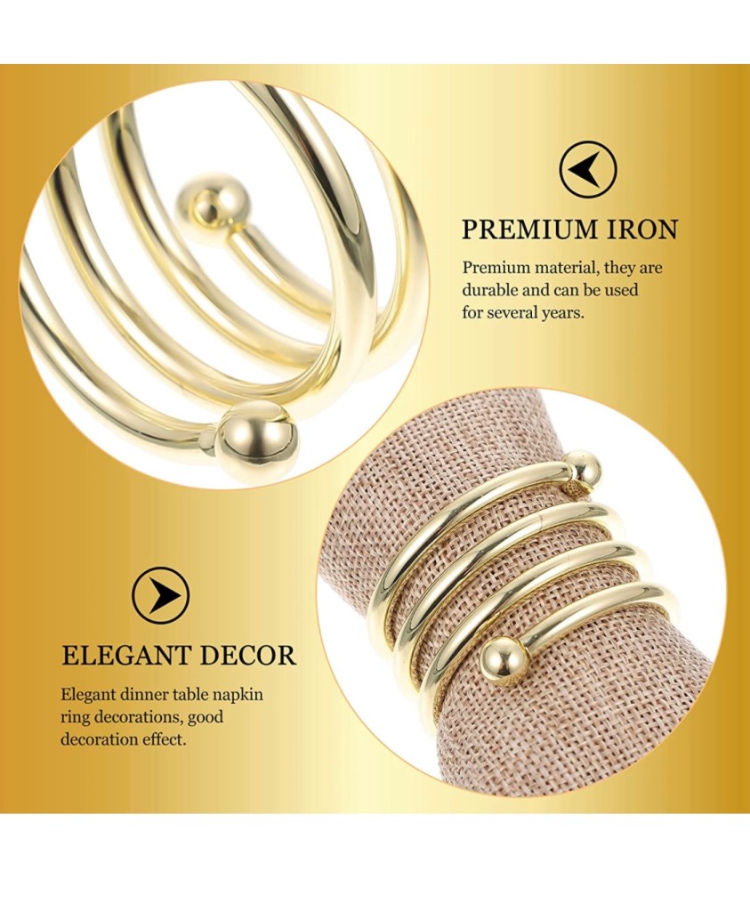 Napkin Rings are usually made of high- end materials, durable and functional. Napkin Rings are a great set of decorations to an elegant vibe. For its sturdiness, napkin rings set can be reused, perfect for home and party decoration.