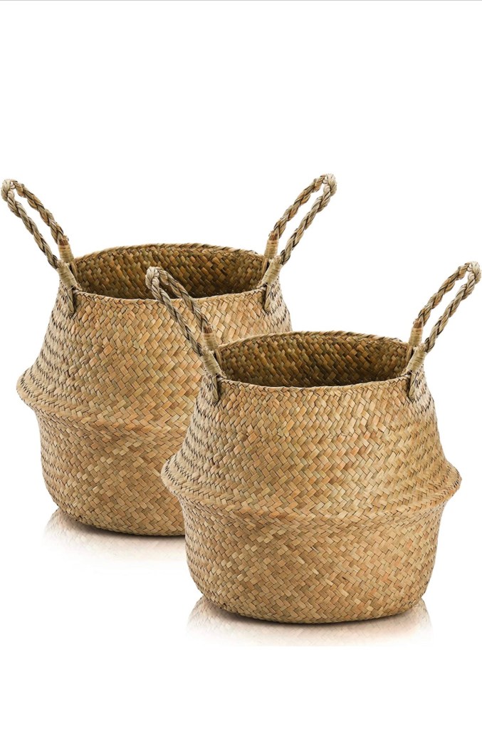 Multi-purpose baskets: Christmas Holiday Decor, Plant Basket Pot,Laundry, Store Toys, etc.Yesland 2 Pack Woven Seagrass Plant Basket https://amzn.to/3WzVmZR with Handles, Ideal for Storage Plant Pot Basket, Laundry, Picnic, Plant Pot Cover, Beach Bag and Grocery Basket (L). Size (approx.): L: 12 *10.5”. Yesland seagrass belly basket is handmade products, each basket will be special and a little different from others.