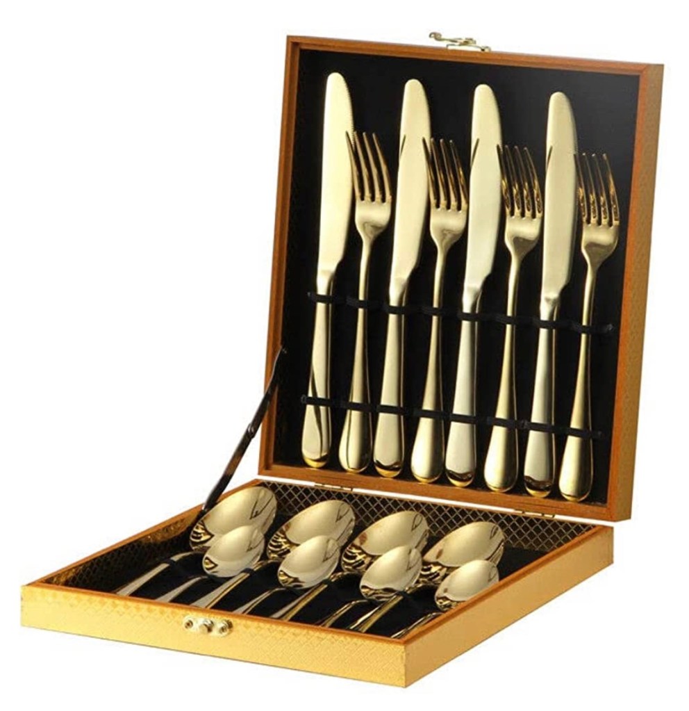 Yarra Supply Gold Cutlery Set, Stainless Steel Silverware Set,24 Pieces Dinner Forks And Spoons, Flatware Cutlery Sethttps://amzn.to/3Zo000c For Ceremony, Home Party, Kitchen, Wedding, Restaurant, Party, Event, Banquet, Birthday Dinner Party, (24)Kismyla 72-Piece Gold Flatware Set Silverware Set for 8, https://amzn.to/462xALq Gold Spoons and Forks Set, Stainless Steel Utensils Set for Home Kitchen Restaurant Hotel Wedding, Dishwasher Safe Cutlery (Mirror Polished)…VananaCutlery Set Stainless Steel Dinner Sets 24 Piece Set Service for 6 https://amzn.to/3Lp036a Flatware Silverware Set with Beautiful and Durable Box Solid Dinningware Tableware Dishwasher Safe for Home, Restaurant (Gold)Runfly Gorgeous Retro Royal Gold Stainless Steel 20 Pieces Flatware Set, Golden Silverware Set,https://amzn.to/3Lof9Jb Anti-rust Stainless Steel Gold Cutlery Set Utensils Including Fork Spoon and KnifeBuyer Star 4-Piece Stainless Steel Flatware Cutlery Set for 1, https://amzn.to/44XfsBj Exquisite 18/10 Silverware, Include Knife/Fork/Spoon, Dishwasher Safe, Black Matte (4-Piece Gold)Oziral Golden Cutlery 20 Piece Cutlery Set Gold with Knife Spoon Fork Service for 4 People https://amzn.to/3RkYo5m Cutlery Gold Ideal for Everyday Use at Home360pcs Gold Silverware, Gold Cutlery, Gold Party Flatware,Elegant Durable Cutlery, 120 Gold Knives, 120 Gold Forks, 120 Gold Spoonshttps://amzn.to/3PAzRrFKEAWELL Gorgeous Gold Flatware Box Sets of Steel Knives and Forks ,Heavy Tableware Antique Gold Flatware Set, https://amzn.to/44UmirrGold Flatware 18/10 Service for 4,Antique Baroque Gold-plated Style Flatware SetKIIZYS Matte Gold Silverware Set – KiiZYs 8-Piece Korean Utensils https://amzn.to/3RhdJ6Z Chopsticks and Spoon Set – Long Handle Serving Knife Fork Cutlery – Kitchen Flatware Dinnerware Cubiertos de Acero Inoxidable (Gold, 2 Sets)Kismyla Flatware Set, 32-Piece Silverware Cutlery Set for 8, Premium Stainless Steel Utensil Mirror Polished Dishwasher Safehttps://amzn.to/486zdt4 for Home, Restaurant, Wedding, Party (Gold)Yanglin 16-Piece Stainless Steel Flatware Set Service for 4 People, Food Grade Stainless Steel Flatware Cutlery Set https://amzn.to/3PyUlAZ for Home, Party and Restaurant, with Storage BoxErised’s Bifrost Modern Simplicity Handle Piece Stainless Steel Flatware Cutlery Set,Portable Utensils, https://amzn.to/3ZixrkH Travel Camping,Dishwasher Safe,Steak/Cheese/Butter Knife,Dessert Fork,Soup SpoonsFulasun Flatware Set, Western Tableware Set Stainless Steel Silverware Set Reusable Stainless Steel https://amzn.to/3PgxU2e Portable Travel Cutlery Utensils Kitchen Utensils Dishwasher Safe for Home Kitchen (Gold)OGORI Gold Silverware Set, OGORI 24-Pieces Gold Forged Stainless Steel Flatware Set, Service of 6 https://amzn.to/468wr4WSmartpress24Pcs Stainless Steel Cutlery Flatware Set Fork Knife Spoon https://amzn.to/3ZkRDm6 Kitchen Tableware Knife/Fork/Spoon/Teaspoon Cafe Dinner (Gold)
