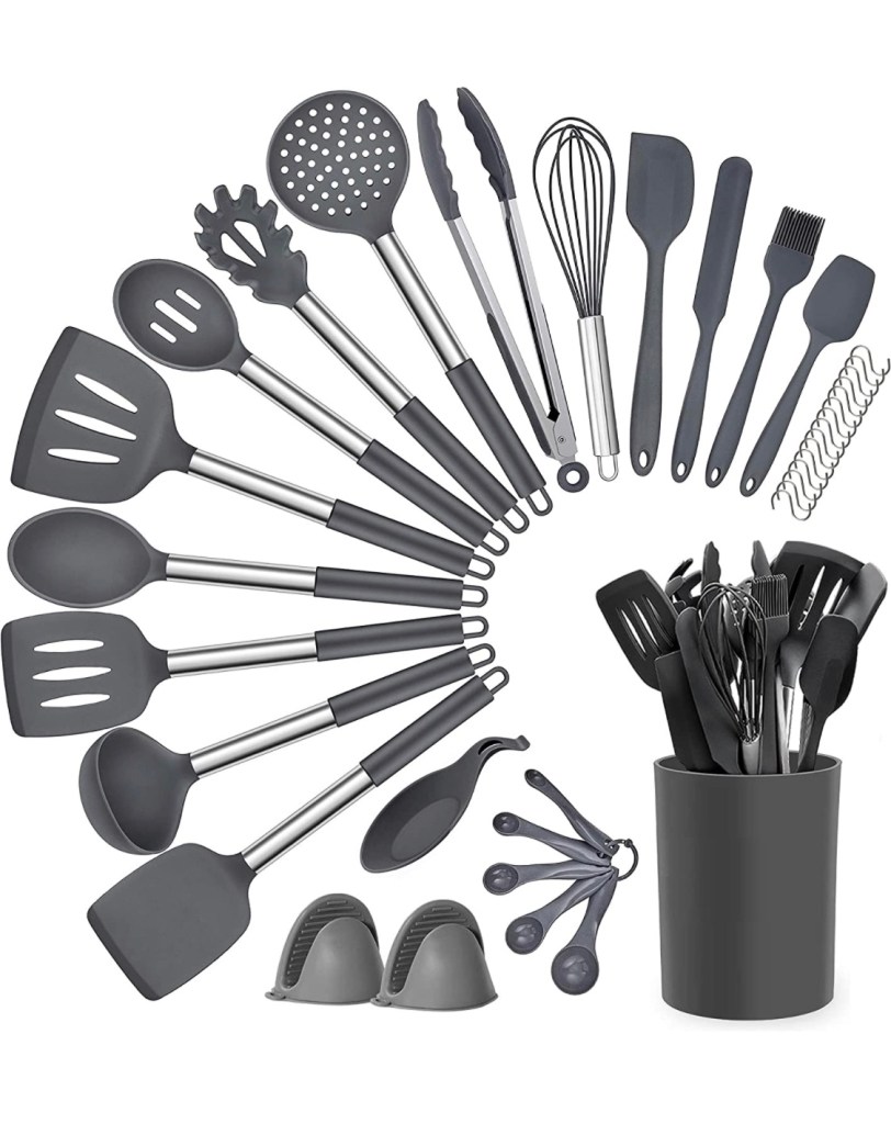 Most of these kitchen utensils sets come with coordinating storage containers to keep them neat and organized.