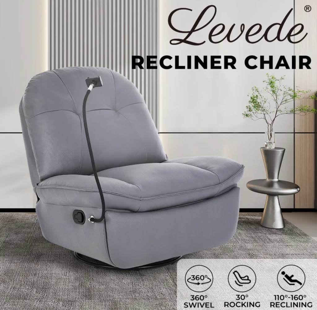 Check on Levede Recliner Chair Lounge 360°Swivel Rocker Sofa Comfy Armchair Lounge Grey at eBay with amazing price offer for a limited time. Click product link for more details.