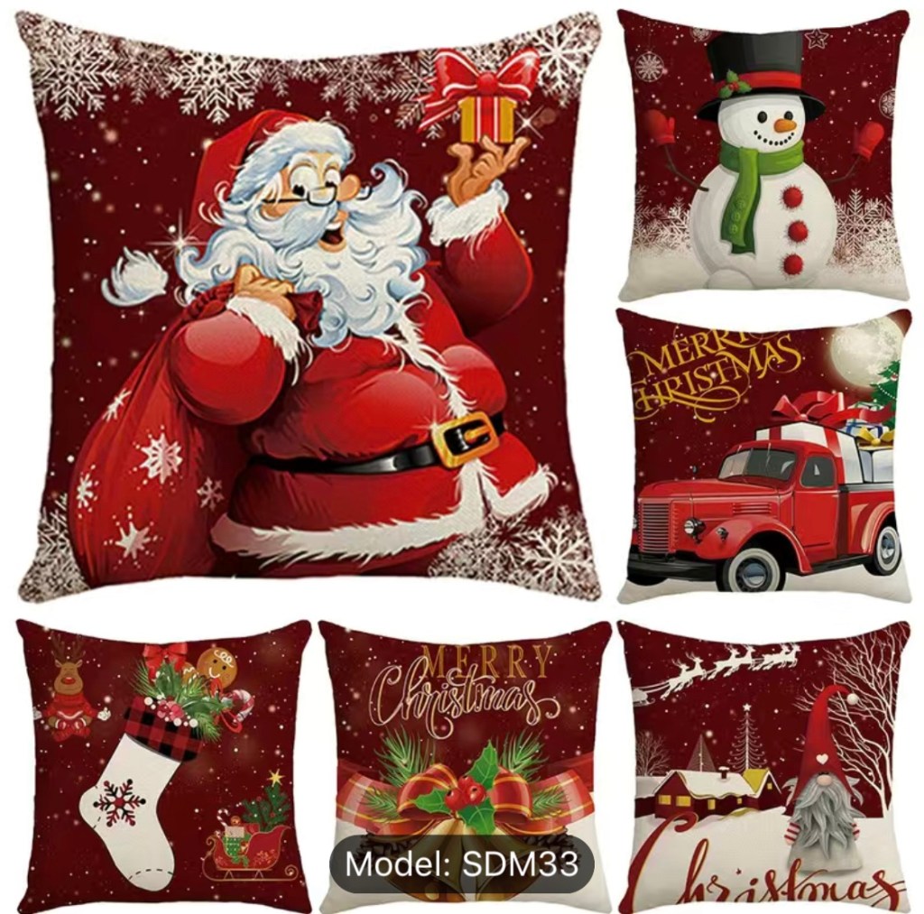 Christmas decorative cushions are cushions that are specifically designed and decorated for the Christmas season. They often feature festive designs and patterns such as snowflakes, reindeer, Santa Claus, Christmas trees, and other holiday-themed motifs.