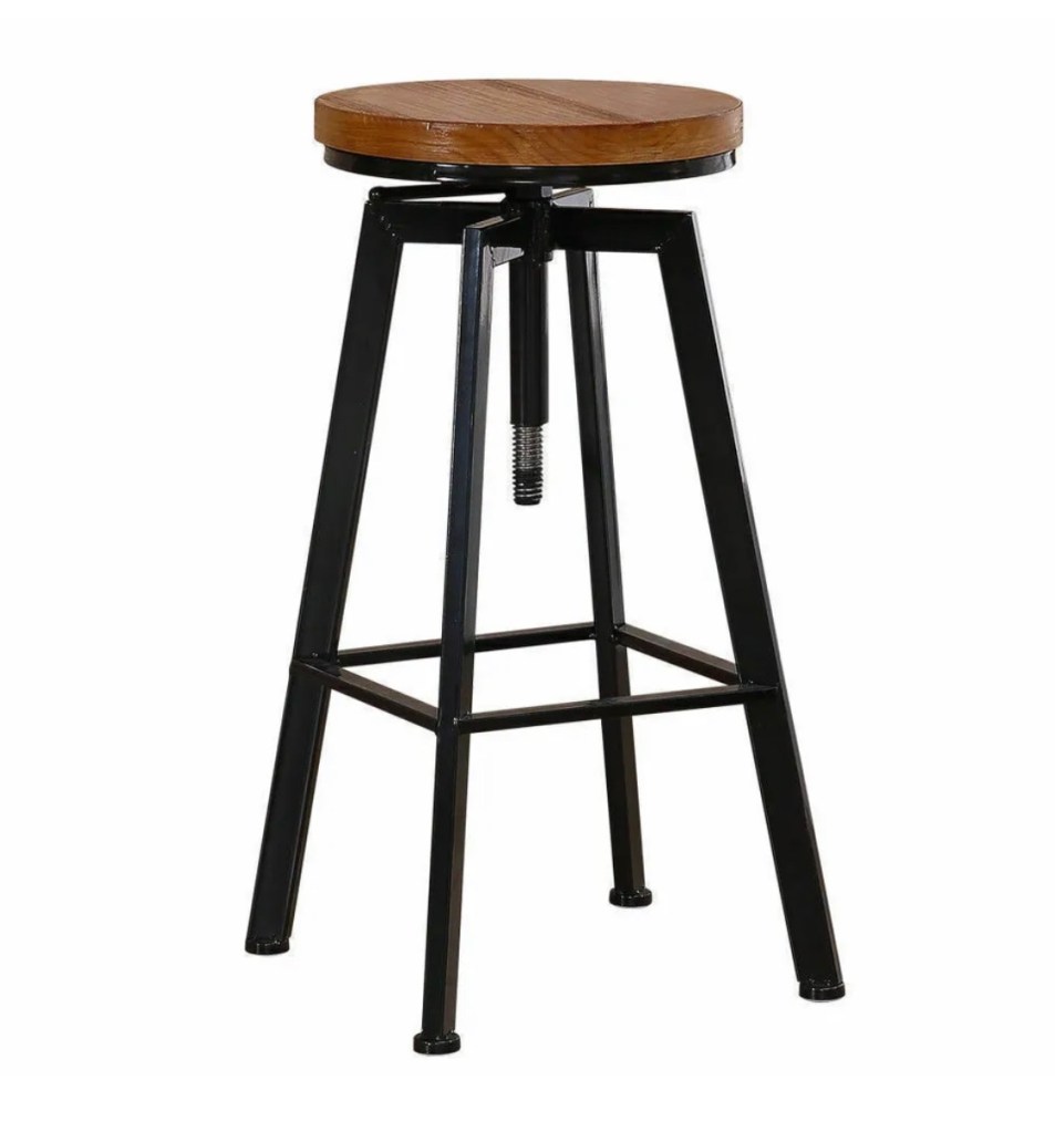 Retro-inspired, the stool has minimal style with a rustic height adjustment function where the seat is adjusted up and down by swivel.