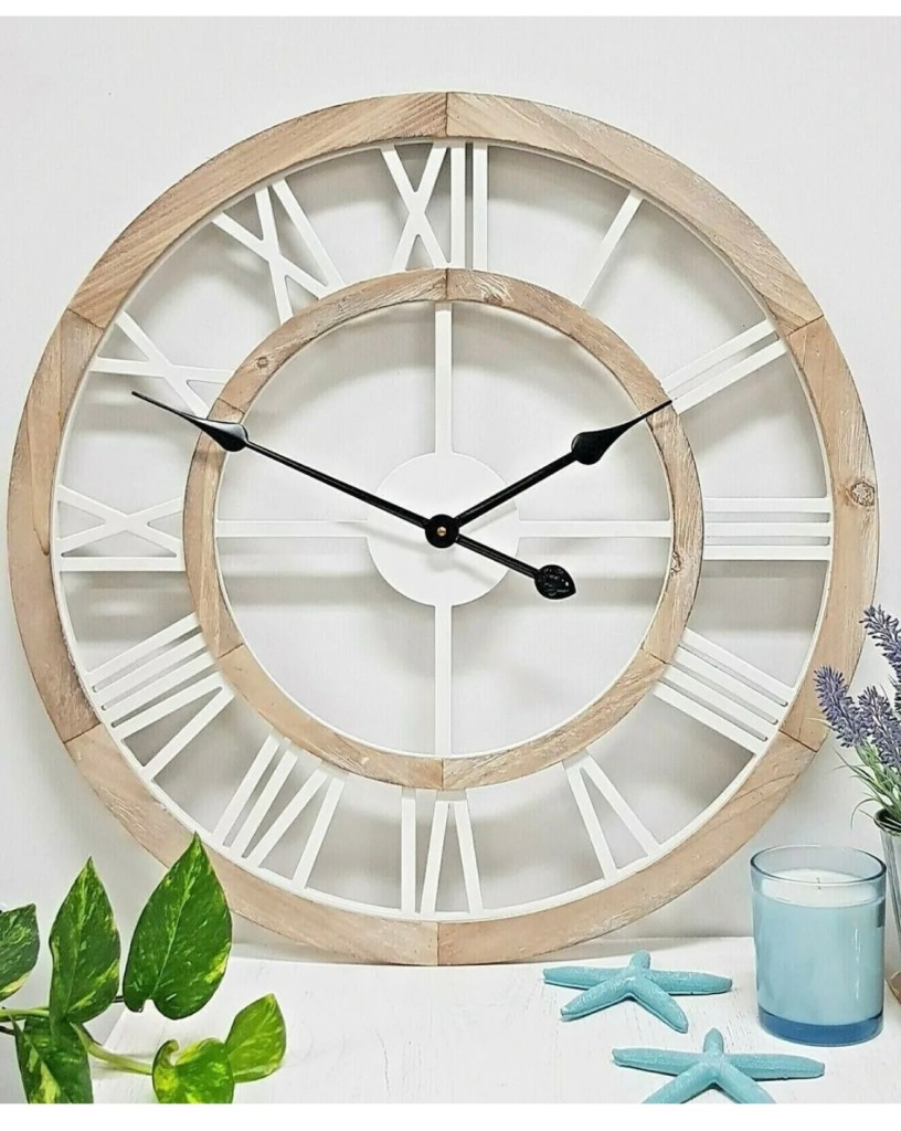 Whether you prefer a sleek and geometric Art Deco clock, a rugged and industrial-inspired clock, a vintage or rustic clock with distressed finishes, or a farmhouse-style clock with a weathered look, these designs can enhance the overall aesthetic of a room.